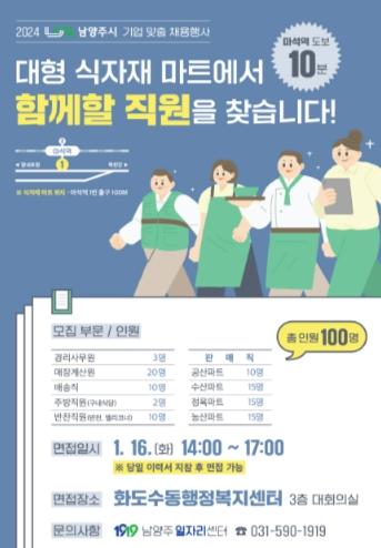 남양주시는 오는 16일 화도수동행정복지센터 대회의실에서 올해 첫‘기업 맞춤 채용행사’를 개최한다.