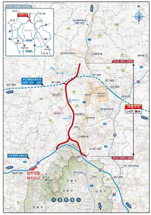 국토교통부는 수도권 제1순환 고속도로의 의정부시 구간과 수도권 제2순환 고속도로의 양주시 구간을 연결하는 서울-양주 고속도로 민간투자사업의 우선협상대상자로 포스코이앤씨컨소시엄((가칭)서울양주고속도로(주))을 선정할 계획이라고 밝혔다.