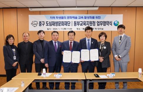 대구 중구 도심재생문화재단과 대구광역시 동부교육지원청은 11일 봉산문화회관에서 지역 학생들의 문화예술교육 활성화를 위한 업무협약을 체결했다.