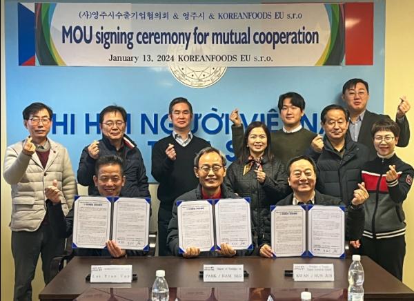 방문단은 12일에는 체코 바이어 한다음(HANDAUM s.r.o.), 13일에는 코리안푸즈(KOREANFOODS EU s.r.o.)와 연이어 영주시 농특산물의 수출 활성화를 위한 업무협약을 체결하고 지속적인 농특산품 수출 확대를 위해 업체별 맞춤형 수출상담회를 진행했다.