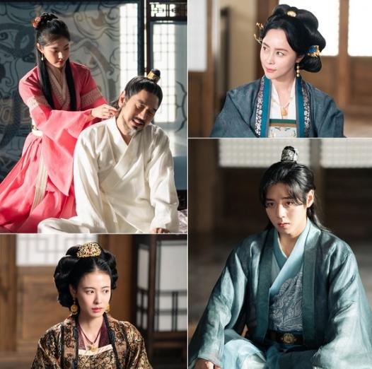 오늘 15일(월) 공개된 스틸에는 사조 현과 연월, 금화, 아사태국의 왕 사조 승과 그의 후궁 청명비(우희진 분)의 모습이 담겨 있다.
