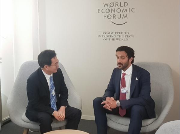 이어 “이곳은 수많은 세계 지도자들과 명함을 주고 받으면서 비즈니스를 할 수 있는 ‘물 반, 고기 반’ 같은 공간이다. 황금어장 속 어부가 돼 수많은 사람을 만났다”면서 “전 세계에서 수천 명 지도자, 세계 유수 기업들이 왔다. 나흘 동안 거의 갇혀 있는 생활하면서 압축적으로 만날 수 있는 기회다. 모든 분들을 만나고 싶다”고 첫날의 소감을 밝혔다.