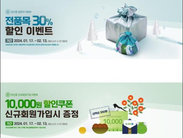 경산시는 설 명절을 맞아 17일부터 다음 달 13일까지 농특산물 온라인 쇼핑몰인‘경산몰’을 통해 설맞이 농특산물 할인행사를 진행한다.