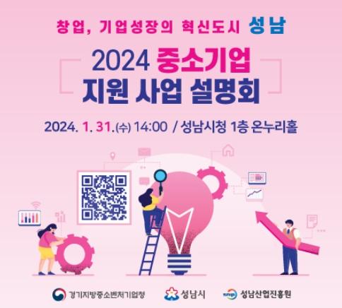 성남산업진흥원은 오는 1월 31일, 오후 2시 성남시청 1층 온누리홀에서 ‘2024 중소기업 지원사업 설명회’를 개최한다고 밝혔다.