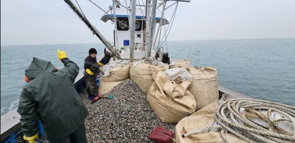 도리도 귀어인 자율관리어업공동체는 새꼬막 양식 사업비의 20%를 자체 투자하여 작년 12월부터 새꼬막 채취로 소득을 올리고 있다.