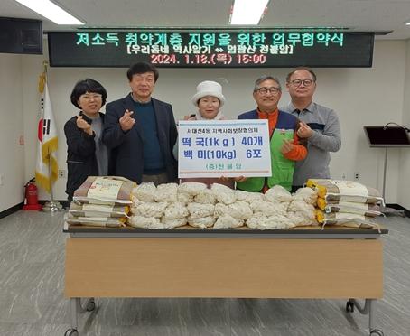 부산 서구 서대신4동 우리동네 역사알기 구덕골자원봉사캠프와 엄광산 천불암은 지난 18일, 엄광산 천불암과 취약계층 지원을 위한 업무협약을 체결했다. 엄광산 천불암은 매월 쌀 6포를 관내 취약계층을 위해 지원하기로 협약하였으며, 이날 지원받은 떡국 1kg 40봉, 쌀 10kg 6포는 서대신4동 지역사회보장협의체를 통해 저소득가구에 전달하여 따뜻한 이웃사랑을 실천할 예정이다.