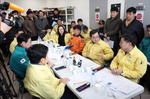 김동연 지사는 “다들 애쓰셨다. 도에서 재난관리기금도 지출했는데 우선 할 수 있는 건 다 하도록 하고 특별재난지역 선포 건의라든지 특별교부세 신청도 협력하겠다”며 “눈에 보이는 것뿐만 아니라 토양오염 등에도 근본적인 대책을 세우고 환경단체나 주민들께도 아주 투명하게 알려드려서 안심할 수 있도록 해달라”고 당부했다.