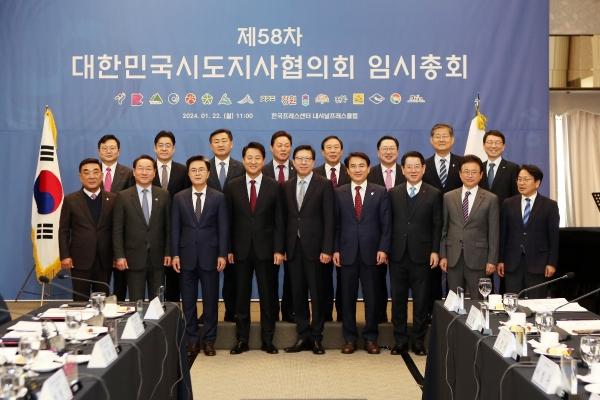 이장우 대전시장은 22일 오전 서울 중구 프레스센터에서 열린 대한민국 시도지사협의회 제58차 총회에 참석해 협의회 현안사항과 2024년도 중앙지방협력회의 상정 안건을 논의했다.