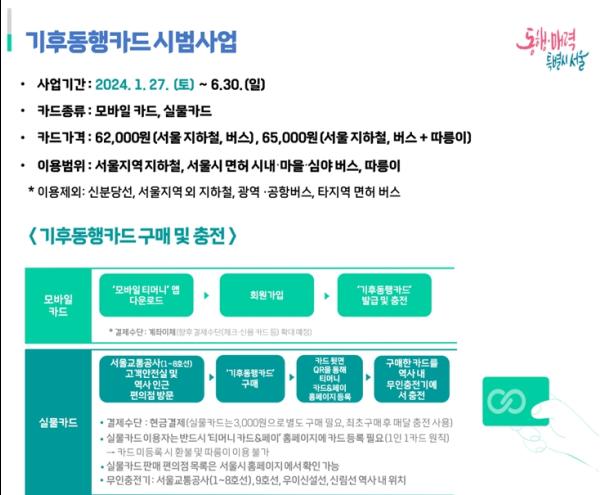기후동행카드는 오는 1월 27일 토요일 첫차부터 사용할 수 있다.