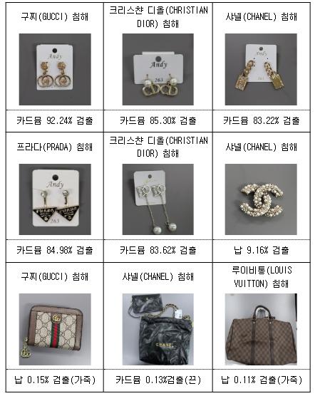 특히, 패션아이템으로 인기가 많은 루이비통, 디올, 샤넬 등 해외명품 브랜드의 짝퉁 귀걸이 24개 제품 중 20개(83%)에서 카드뮴이 검출됐으며, 그중 3건은 기준치를 초과하는 납도 함께 검출됐다.