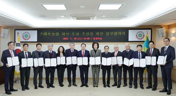 대전시는 24일 대학, 정부기관, 출연연, 기업 등 13개 기관과‘대전 스마트농업 허브 도시 조성을 위한 업무협약’을 체결하고, 스마트농업 육성 및 확산·고도화를 위해 역량을 결집하기로 했다.