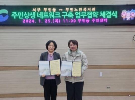 부산 서구 부민동과 부민노인복지관은 1월 25일 주민상생 네트워크 구축을 위한 업무협약을 체결하여 지역사회 공동체 문화 활성화를 위한 유기적 협력체계를 이어나가기로 했다.