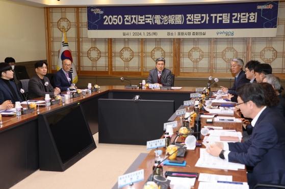 포항시는 급변하는 국제정세에 대응해 글로벌 이차전지 산업 추진 방향 및 이차전지 특화단지의 성공적인 조성을 위한 ‘2050 전지보국 전문가TF 간담회’를 25일 개최했다.