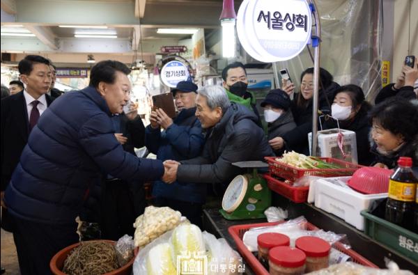 윤석열 대통령은 1월 25일 경기도의 대표 전통시장인 의정부제일시장을 찾아 최근 불경기에 동절기 한파까지 겹쳐 어려움을 겪고 있는 상인들을 격려하고 현장의 이야기를 경청했다.