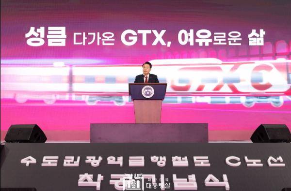 윤석열 대통령은 1월 25일 의정부시청 다목적체육관에서 열린 수도권광역급행철도(GTX) C노선 착공 기념식에 참석했다.