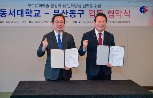 부산 동구는 동서대와 지난 25일 부산웨스틴조선호텔에서 다방면의 협력을 위한 업무협약(MOU)을 체결했다고 26일 밝혔다.