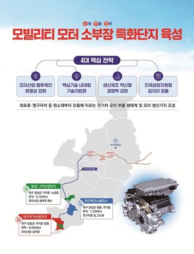 모터 소부장 앵커-협력기업 간 밸류체인 강화를 위한 산업 집적과 핵심 기술 국산화 등 모터특화 산업혁신생태계 구축을 위해 대구국가산업단지를 비롯한 특화단지에 155억 원을 투입해 글로벌 모터생산 거점으로 조성한다.