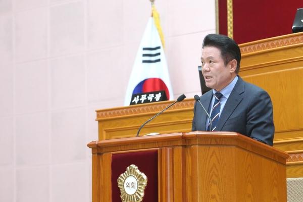 최대호 안양시장이 29일 열린 제290회 안양시의회 임시회 제1차 본회의에서 ‘경부선 지하화’ 준비 등 시민과 함께 안양시의 미래를 개척해 나가겠다고 밝혔다.