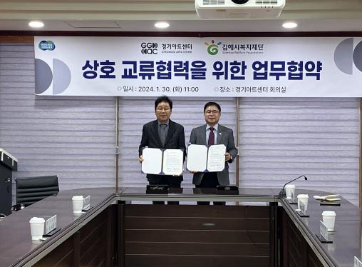 (재)김해시복지재단과 (재)경기아트센터는 1월 30일 경기도 수원시에 소재하고 있는 경기아트센터에서 업무 협약을 체결했다.
