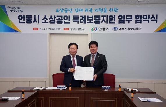 안동시가 이달 29일 경기 침체로 어려움을 겪고 있는 소상공인들의 경영안정과 일상회복을 돕기 위해 경북신용보증재단과 특례보증 지원사업에 대한 업무협약을 체결했다.