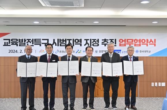 교육발전특구 시범지역 공모 신청 및 지정이 임박한 가운데, 충남도가 공모 통과를 위해 도교육청, 아산시, 도내 대학과 손을 맞잡았다.