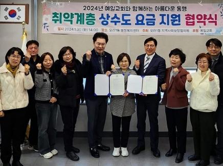 이번 협약을 통해 예일교회는 경제적으로 어려움을 겪고 있는 취약계층 33세대에 상수도 요금으로 매월 3만 원씩 1년간 지원하기로 했다.