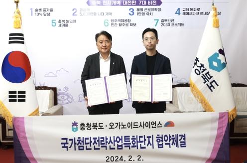 충청북도는 2일 김영환 충북도지사와 유종만 오가노이드사이언스 대표가 산업부에서 공모중인 바이오 분야 국가첨단전략산업 특화단지 공동대응과 협력사업 추진을 위한 업무협약을 체결했다.