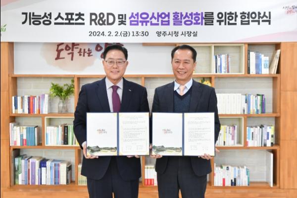 이번 협약을 통해 양주시와 한국섬유소재연구원은 정부 주도 연구개발 사업에 공동대응하고 기능성 스포츠 의류의 핵심 소재 개발 및 상용화를 위한 전략적 협력에 나선다.