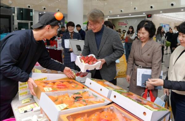 서구는 5일 주민 및 공직자를 대상으로 ‘구청에서 명절 장보기’ 행사를 진행했다. 그동안 서구는 명절마다 부서별로 전통시장을 방문해 장보기 행사를 진행했으나, 발상의 전환으로 지난해부터 청사에 직거래 장터를 열어 공직자들의 명절 준비를 돕는 한편, 상인들의 매출 증대 효과도 거두고 있다.