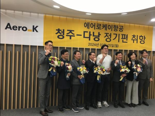 청주국제공항을 거점으로 둔 에어로케이 항공이 5일 청주국제공항에서 베트남 다낭 국제 정기노선 취항식을 개최했다.