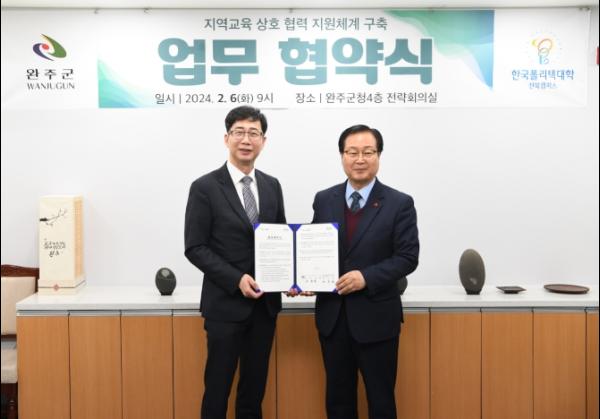 6일 완주군과 한국폴리텍대학 전북캠퍼스는 완주군청에서 지역교육 상호 협력 지원체계 구축을 위한 업무협약을 체결했다.