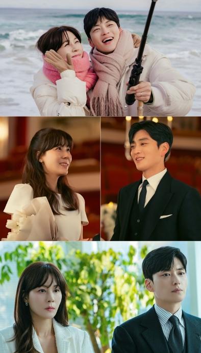 공개된 스틸 속 김하늘과 장승조는 바닷가에서 행복한 표정으로 셀카를 찍고 있다. 서로를 애틋하게 바라보는 이들의 모습은 사랑스러운 신혼부부 그 자체다.