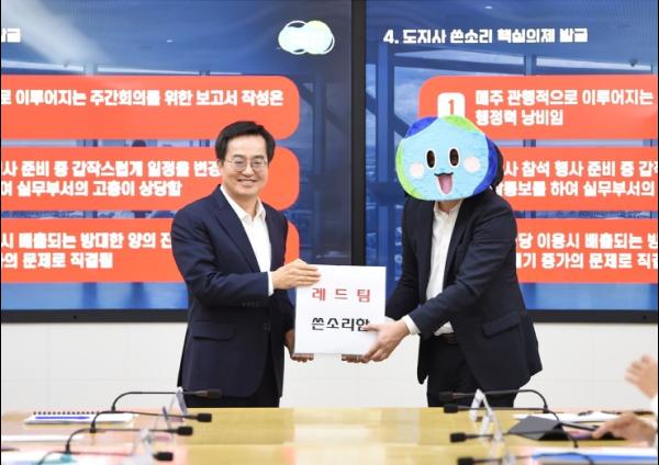 김동연 경기도지사가 경기도 3기 레드팀의 ‘쓴소리’를 받아들여 도청에서 관행적으로 작성되던 주간업무보고서를 줄여나가겠다고 밝혔다.