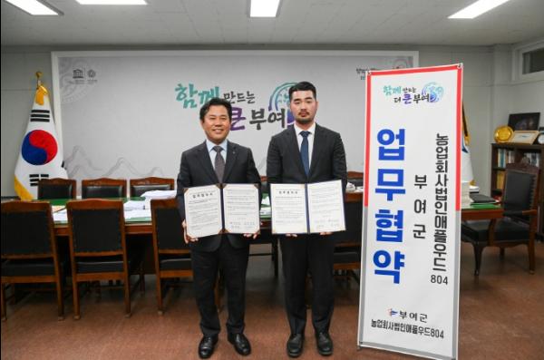 부여군은 지난 15일 대도시 직매장 운영을 위한 협력체계 강화를 위해 농업회사법인 애플우드804와 업무협약을 체결했다.