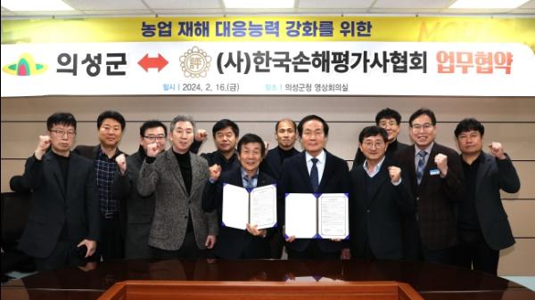이상 기후의 빈번한 발생에 따른 농업 분야 재해 대응 능력을 사전에 강화하고자 김주수 의성군수와 박연수 (사)한국손해평가사협회장이 참석한 가운데 의성군과 (사)한국손해평가사협회가 2월 16일에 업무협약을 체결했다.