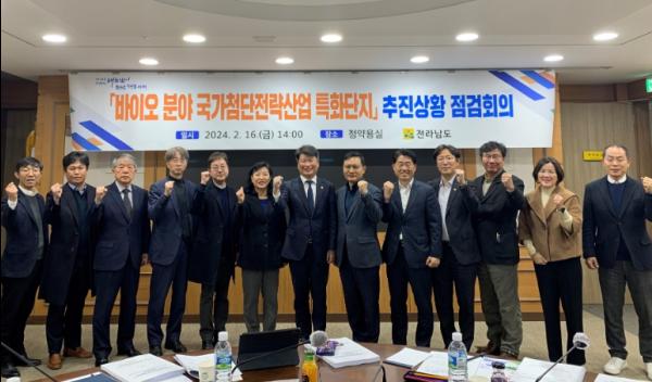 전라남도는 16일 도청 정약용실에서 ‘바이오 분야 국가첨단전략산업 특화단지’ 유치 총력 대응을 위한 추진상황 점검회의를 열어 공모계획서 작성, 선도기업 투자유치 등 특화단지 유치 추진상황 및 대응계획을 논의했다.
