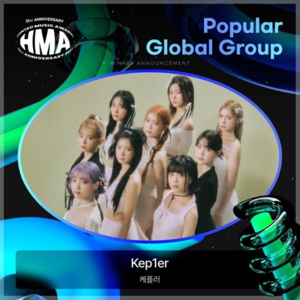 케플러(최유진, 샤오팅, 마시로, 김채현, 김다연, 히카루, 휴닝바히에, 서영은, 강예서)는 지난 17일 서울 동대문디자인플라자에서 열린 ‘31주년 한터뮤직어워즈 2023’에서 파퓰러 글로벌 그룹상을 수상했다.