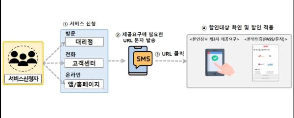 공공 마이데이터 서비스가 통신분야에 적용됨에 따라, 고객은 결합할인 신청 시 통신사의 문자메시지를 받고 제공 요구만 하면, 간편하게 신청이 완료된다.