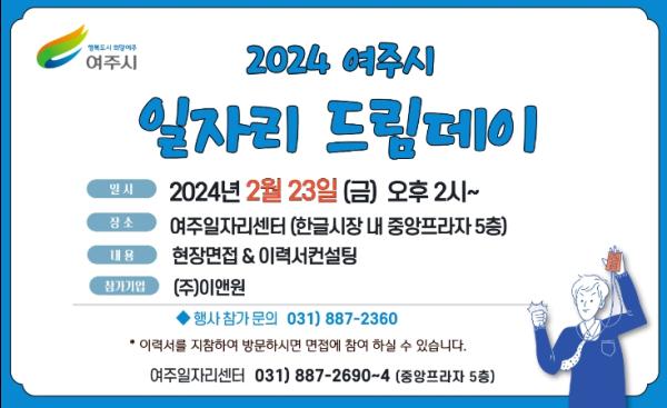 여주시는 오는 23일, 2024년 2월 일자리드림데이를 실시한다고 밝혔다.