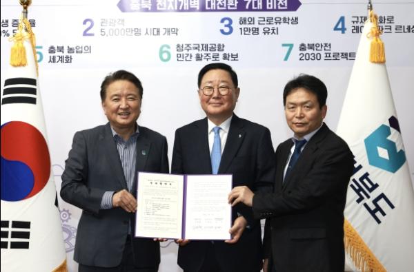 충청북도는 19일 도청에서 충청북도와 청주시, HD현대일렉트릭㈜ 간 청주센트럴밸리 산업단지 내 공장 신설 투자협약을 체결했다.