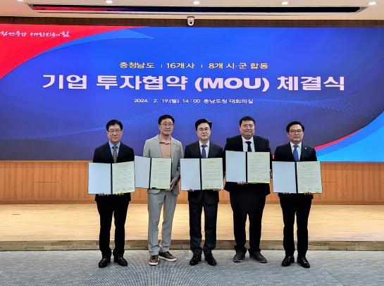 시는 이날 충남도청 대회의실에서 ㈜지앤·㈜송연에스와이· ㈜성신종합유통과 301억 원 규모의 투자협약을 맺었다.