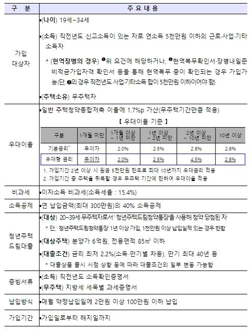 청년주택드림청약통장은 저축부터 청약·대출과 연계하여 청년층의 자산형성과 내 집 마련을 지원하고 주거비 부담을 완화하기 위한 것으로,기존 청년우대형청약저축의 가입대상과 지원내용을 대폭 확대·개편해 새롭게 출시하는 상품이다.