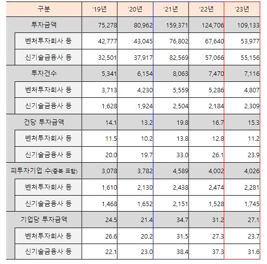 중소벤처기업부는 2023년 국내 벤처투자 및 기금(펀드)결성 동향을 20일 발표했다. 해당 동향은 2023년 4월에 관계부처 합동으로 마련했던 ?혁신 벤처·창업기업(스타트업) 자금지원 및 경쟁력 강화 방안?에 따라 벤처투자회사 등과 신기술사업금융업자 등의 실적을 모두 포함한다.