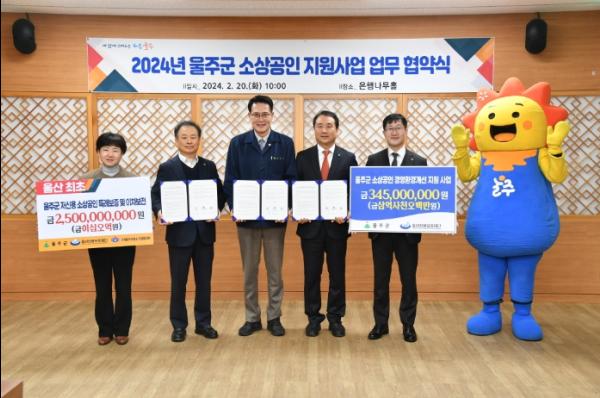 울산시 울주군은 20일 군청 은행나무홀에서 울산신용보증재단(이사장 김용길), (사)울주군중소기업협의회(회장 원경연)와 울주군 소상공인 지원사업 업무협약을 체결했다.