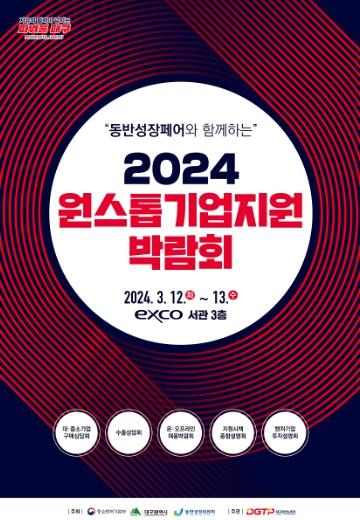 대구광역시는 지역기업의 내수, 수출, 자금, 인력 등 애로 해결을 위해 3월 12일부터 13일까지 엑스코에서 개최되는 ‘2024 원스톱기업지원박람회’ 참여기업을 모집한다.