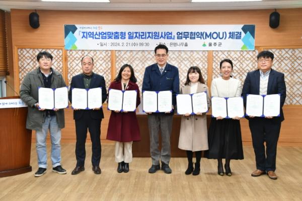 울산시 울주군이 21일 군청 은행나무홀에서 ‘울주형 지역산업맞춤형 전문인력 육성사업’과 ‘지역산업맞춤형 일자리창출 지원사업’ 업무협약을 체결했다.
