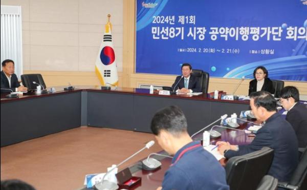 광양시는 20일부터 21일까지 이틀간 민선8기 공약 이행 상황을 점검하고 공약사항 변경 적정 여부 등을 심의하기 위해 2024년 제1회 민선8기 공약이행평가단 회의를 개최했다고 밝혔다.