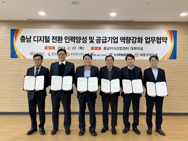 도는 22일 천안시 충남지식산업센터에서 충남연구원, 충남테크노파크, LS일렉트릭, 버넥트, 세종경영자문과 ‘디지털 혁신거점 유치를 위한 디지털 전환 전문기업 협력’ 업무협약을 체결했다고 밝혔다.