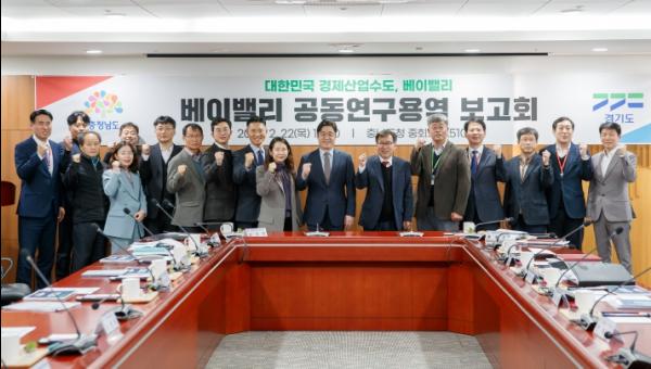 경기도와 충청남도는 22일 충남도청에서 오병권 경기도 행정1부지사와 전형식 충청남도 정무부지사, 실·과장, 경기?충남연구원 등 30여 명이 참석한 가운데 ‘베이밸리 공동연구용역 보고회’를 개최했다.
