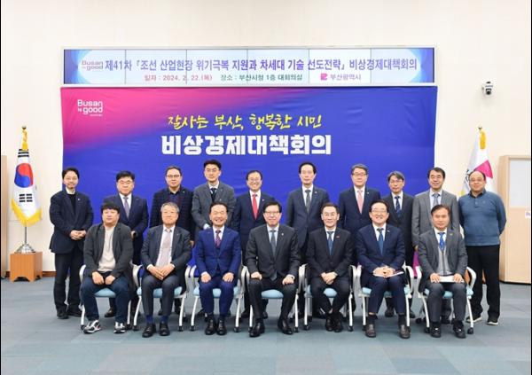 시는 오늘(22일) 오전 9시 시청 대회의실에서 제41차 비상경제대책회의를 열고, 박 시장의 주재로 각계 전문가들과 '부산 조선 산업현장 위기 극복 지원과 차세대 기술 선도전략'을 논의했다고 밝혔다.